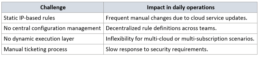 Verwaltung von Firewall-Konfigurationen in hybriden oder Cloud-Umgebungen geht es nicht nur darum, ein paar statische Regeln festzulegen mehr. Mit Diensten wie Microsoft 365, Intune und Azure AD, die sich ständig ändern und neue Endpunkte, IP-Bereiche und Updates hinzufügen, kann es schwierig sein, auf dem Laufenden zu bleiben.