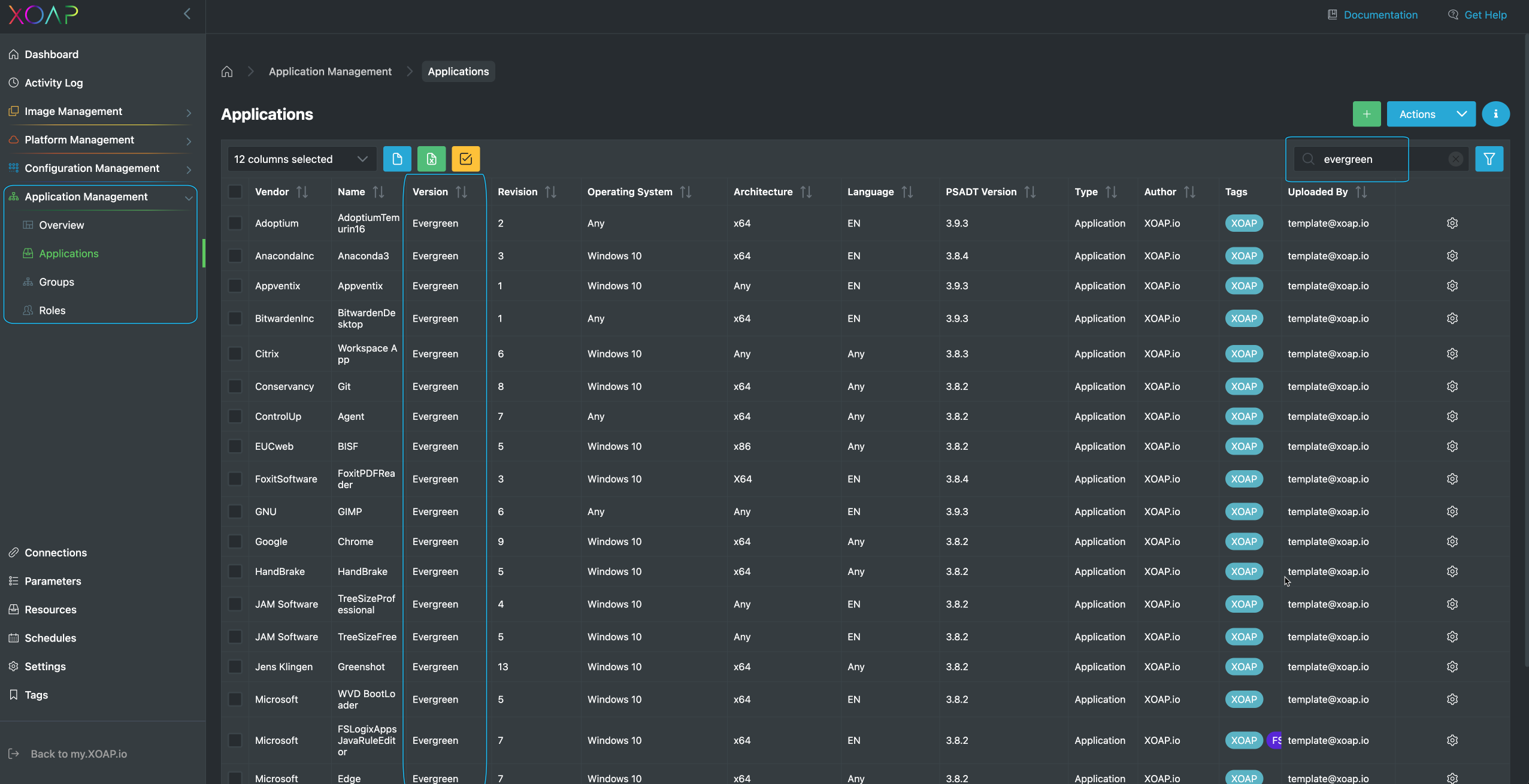 2. The PSADT packages are then uploaded to the XOAP account and can be found under Application Management > Applications. The search function can also help you.
