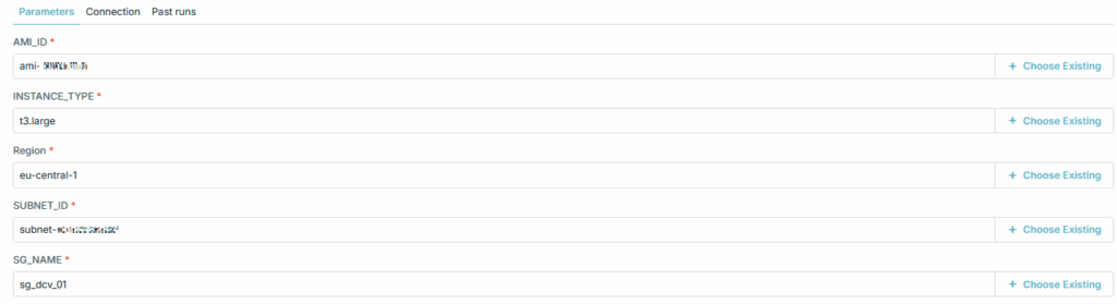 Sous AMI_IDutilisez l'ID de l'image de votre cycle de définition de l'image. Spécifiez l'identifiant de l'image région où vous souhaitez que l'instance EC2 soit créée, ainsi que le fichier SUBNET_ID du VPC dans lequel vous souhaitez placer l'instance. Veillez à choisir la même région que celle spécifiée dans votre définition d'image.. Sinon, l'AMI ne sera pas trouvée, car elle est spécifique à chaque région.